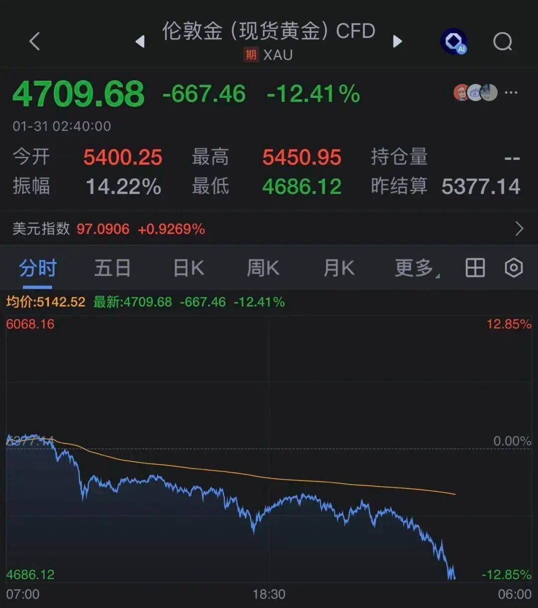 北京时间1月31日凌晨,恐慌性抛售席卷全球贵金属市场。